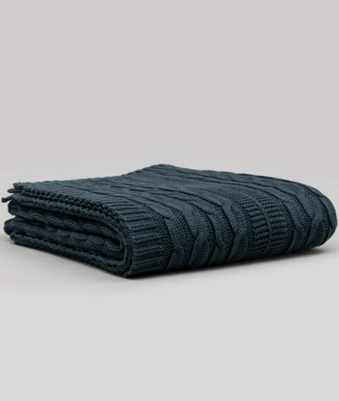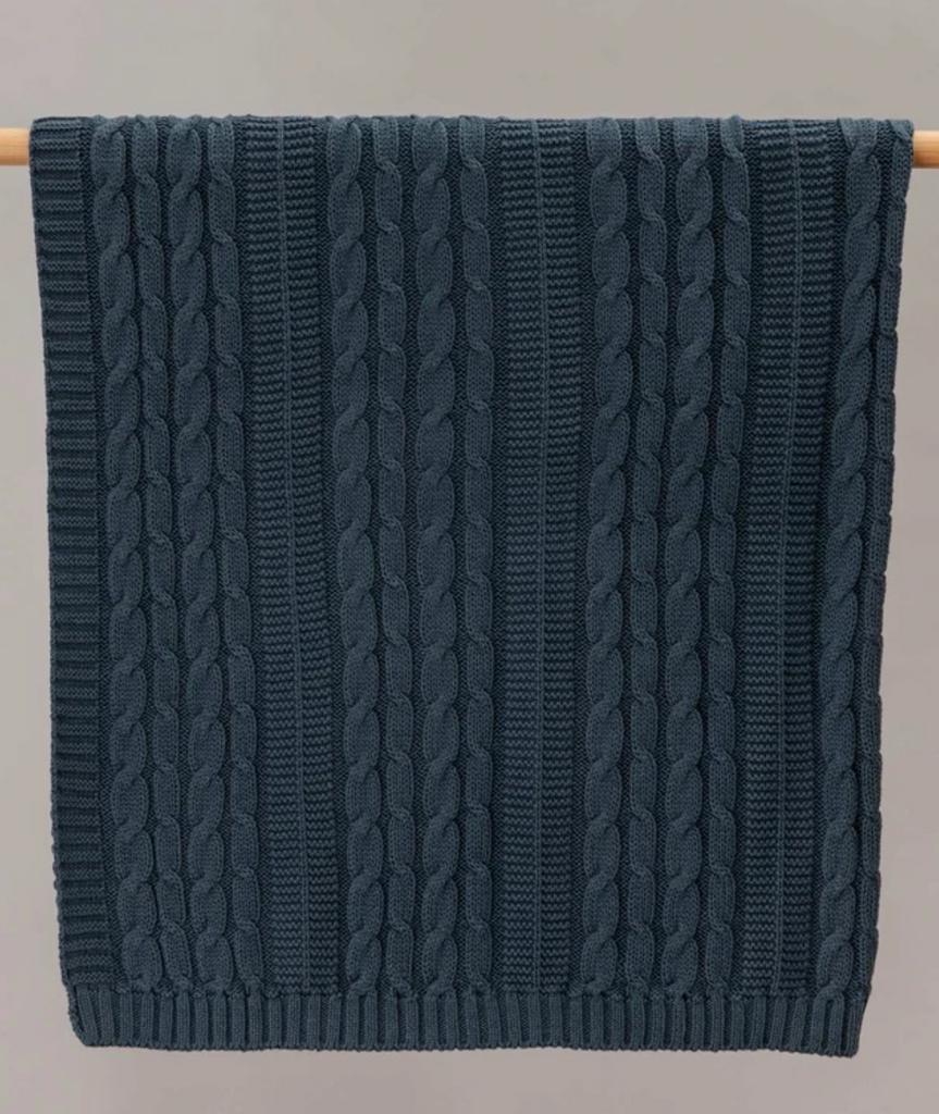 The baby throw is made from fine gauge yarn for a superior, soft feel and has a hand finished cable knit stitch detail.