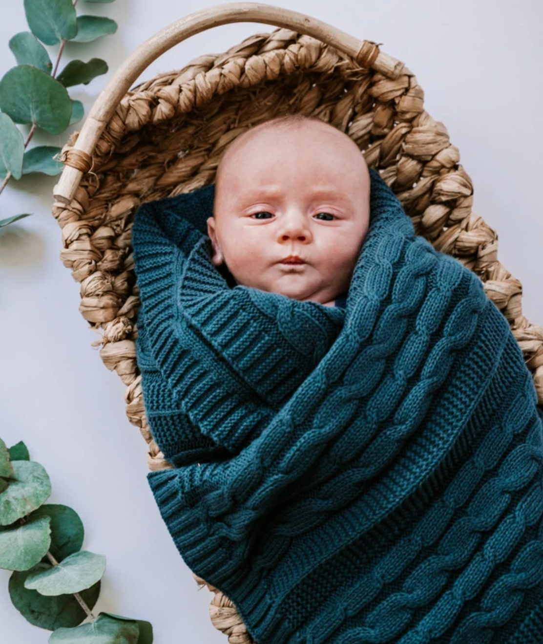 This beautiful baby cable knit throw is irresistibly soft, cosy and breathable and great for all seasons. It's free from toxic chemical sprays and toxic dyes so you can feel peaceful knowing your little one is safely wrapped up in organic goodness. It's also a gorgeous decorative accent to any nursery.