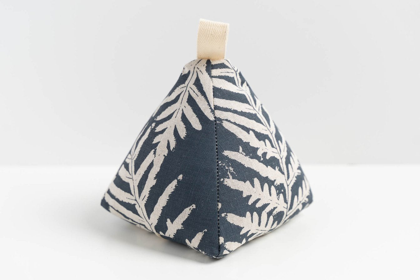 This door stops is made using hand-printed fabrics, filled with locally grown wheat and also fabric offcuts to help reduce waste.