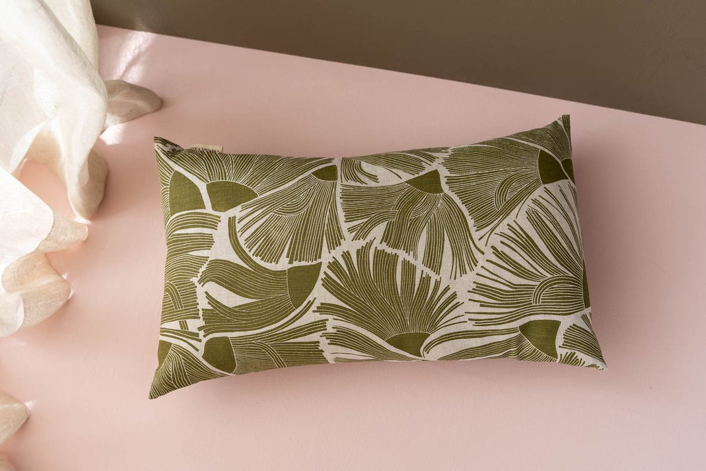 Gumflower in Bushleaf Pattern Eco-Linen Rectangular Cushion Cover