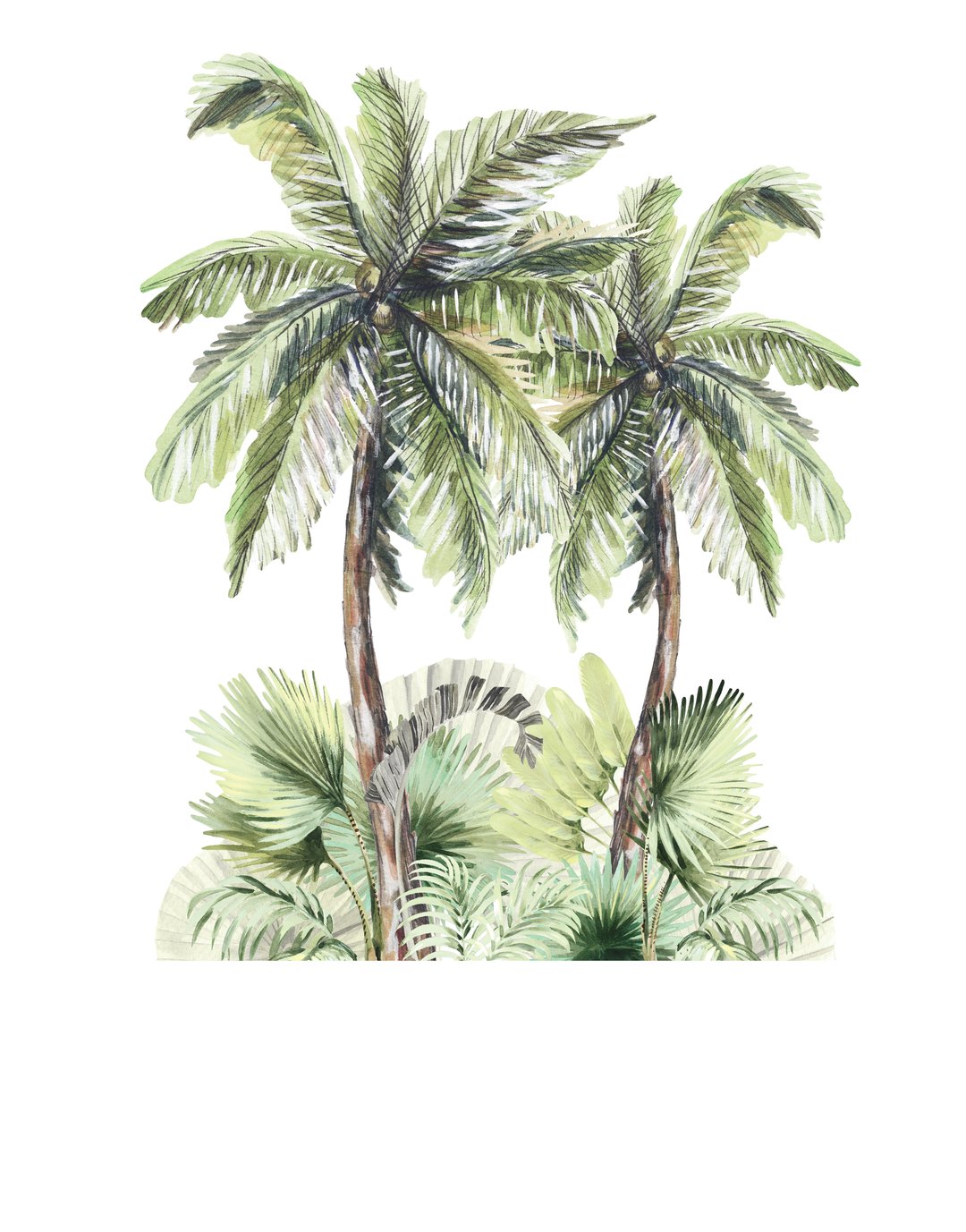 It measures approximately 1.9 metres high x 1.5 metres wide and includes a beautiful collection of watercolour leaves, palms and ferns.