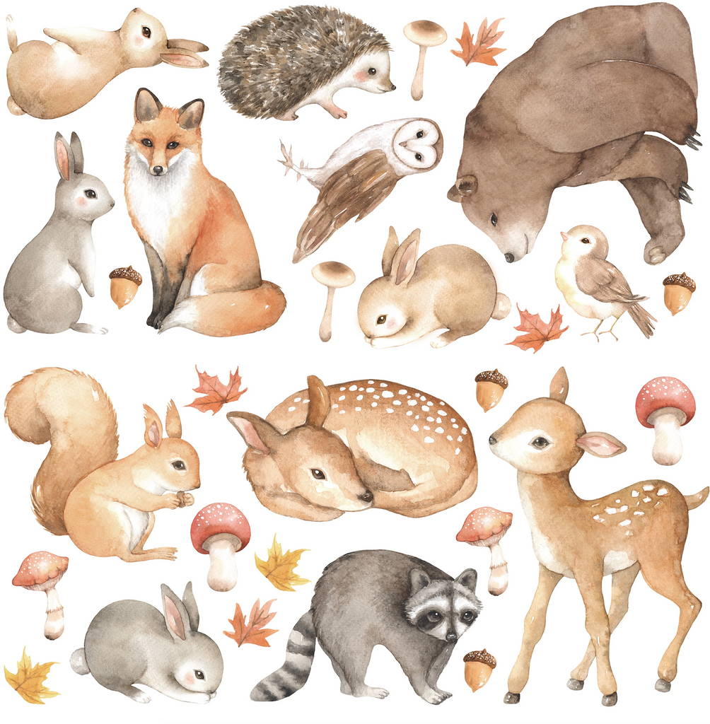 This beautiful woodland animals individual wall decal set is the perfect way to create a forest wonderland in your little ones bedroom or playroom! Ideal for a neutral themed space.